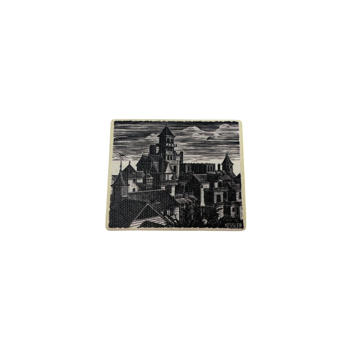 This illustrated square magnet captures the Winchester Mystery House as it stood before the 1906 earthquake, 7-story architectural wonder. Featuring detailed artwork of the mansion’s towering original form, it’s a glimpse into the past and a perfect keepsake for fans of its ever-evolving history.