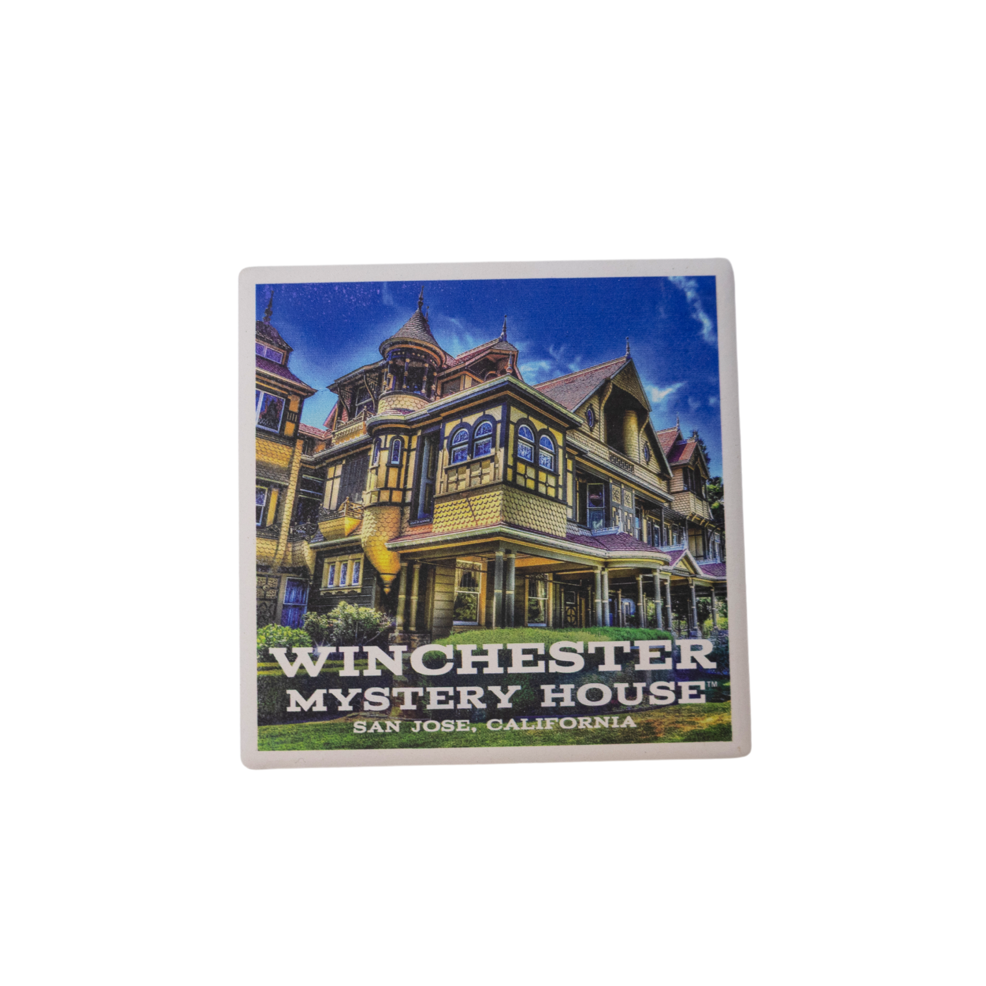 Give your coffee table a mysterious upgrade. This set of four square ceramic coasters features a striking photo of the historic Winchester Mystery House, capturing its beautiful architecture.
