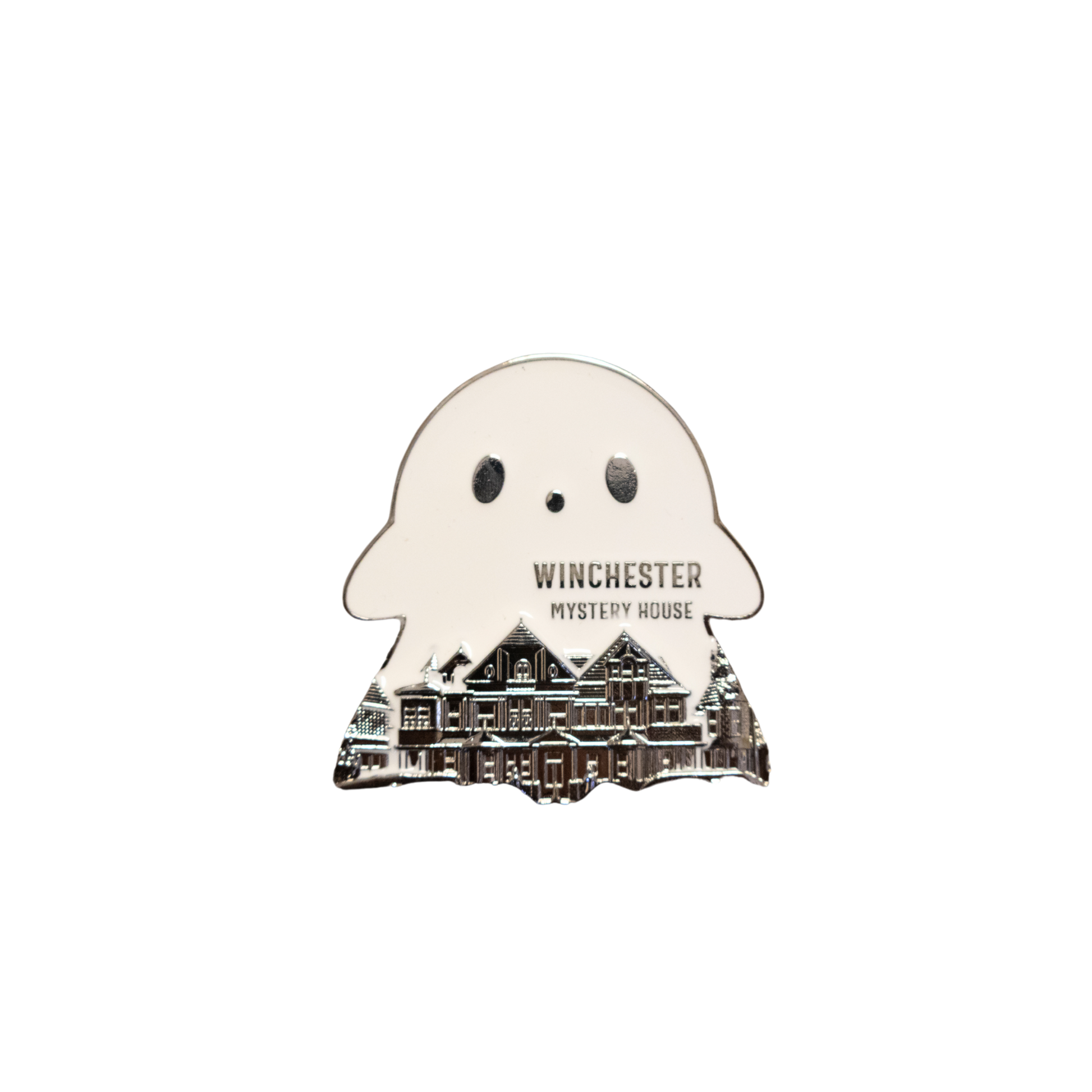 This playful ghost-shaped magnet features the iconic Winchester Mystery House name and outline, making it a spooky-cute addition to your fridge, locker, or any magnetic surface. Perfect for Halloween decorating or as a souvenir from the world’s most mysterious mansion.