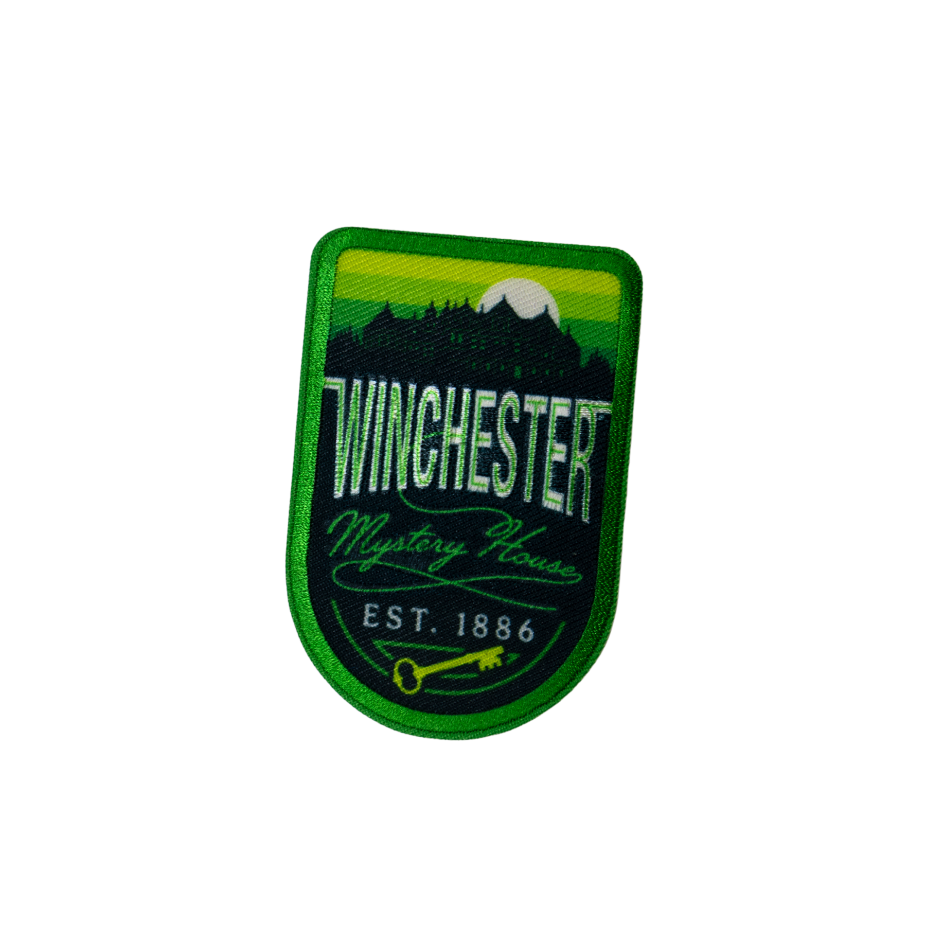Show off your love for the iconic Winchester Mystery House with this stylish iron-on patch. Featuring a detailed design that captures the unique charm of the mansion, it’s perfect for customizing jackets, bags, or hats. Easy to apply and a great way to add some history your wardrobe!
