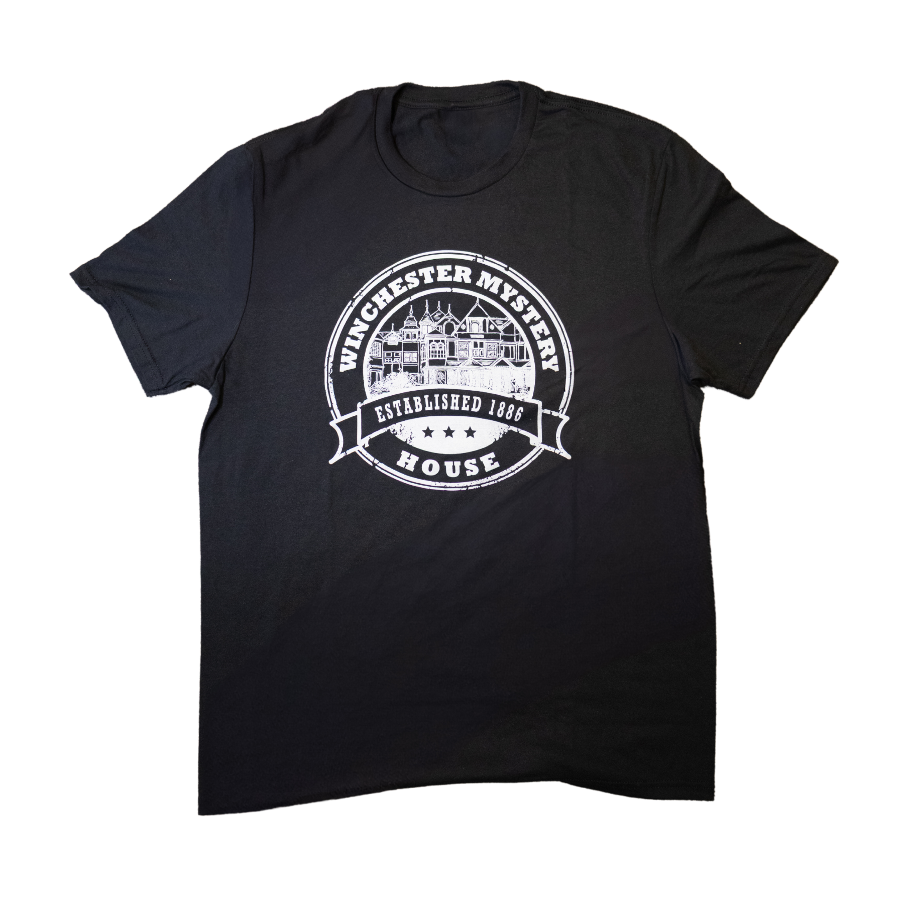 Embrace the history of Winchester Mystery House with this classic landmark tee. Featuring a detailed illustration of the Victorian mansion, this shirt proudly declares when Sarah began building in 1886. Crafted for comfort and style, it's the perfect way to commemorate your visit or showcase your fascination with this unique architecture.